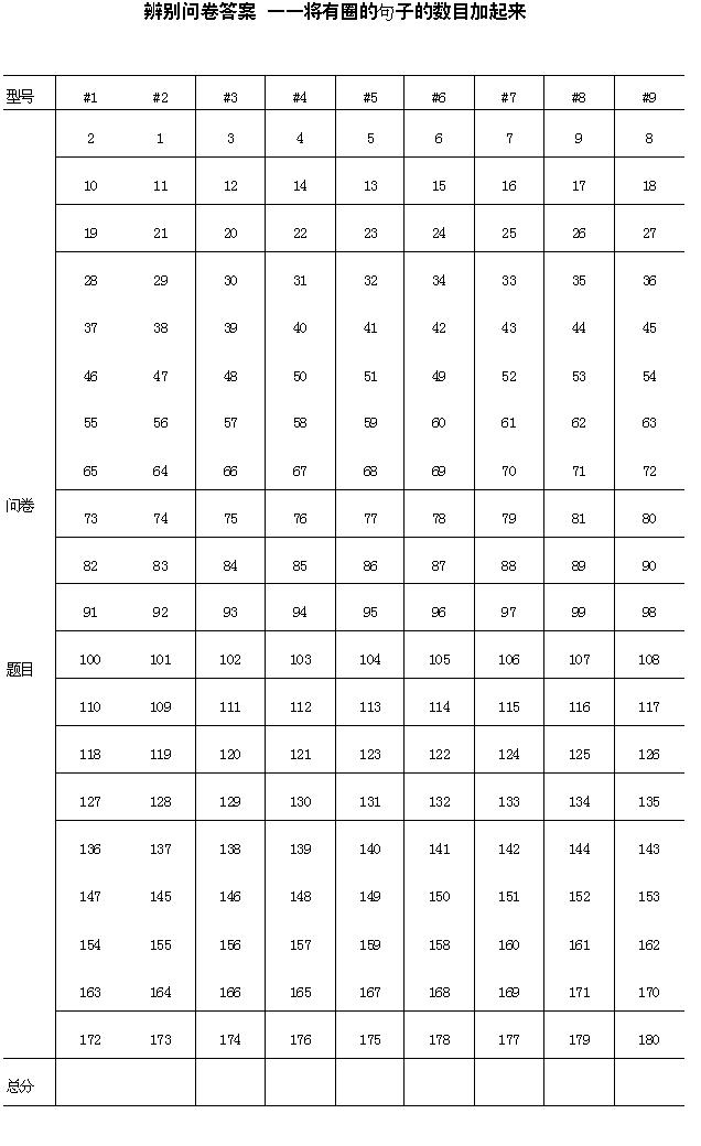 2、选择的题目一定是自己真实的意识或行为表现,而不是自己喜欢的、欣赏的。